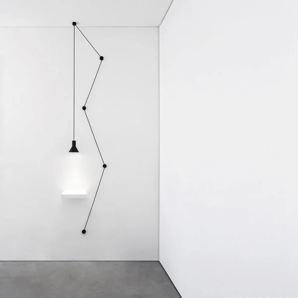 Flash LED is the wall lamp designed by Davide Groppi with a unique and original design. Flash, available in different lenghts, consists of a stretched steel wire that crosses the space and produces a diffused light towards the underlying area. Flash is an object with a simple yet strong aesthetic that immediately catches the eye.